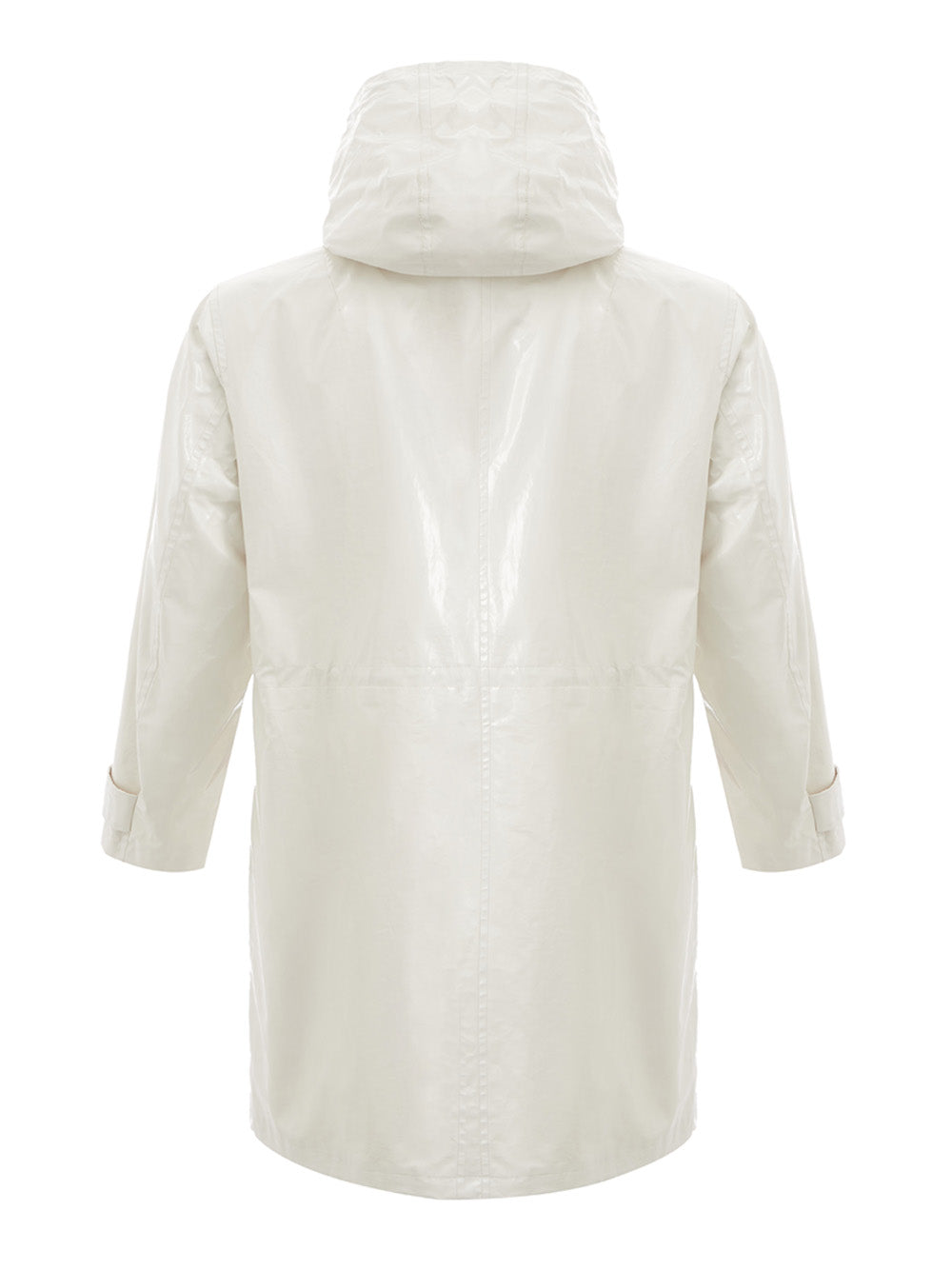 Stay stylish even on rainy days with this gorgeous, brand new white raincoat from Sealup. Perfectly balancing fashion with function, it features elegant metal buttons and a practical adjustable hood that’s ready for any weather. Ideal for completing any outfit with a touch of sophistication.