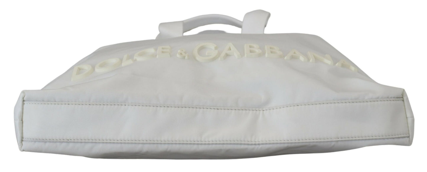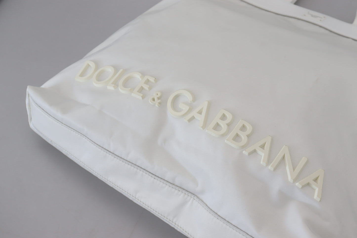 Indulge in the epitome of Italian craftsmanship with this exquisite, brand new white tote bag from Dolce & Gabbana. Its spacious interior and sturdy handles make it a perfect blend of fashion and function, suitable for both your shopping sprees and daily engagements. Luxuriously detailed with the iconic brand’s logo, this tote bag is crafted to elevate your accessory collection.