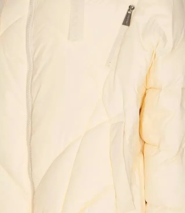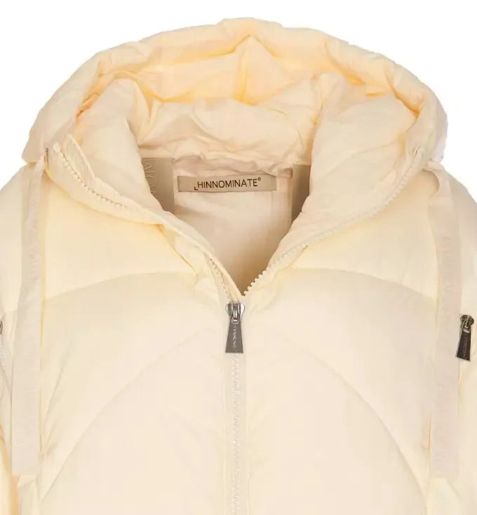 Unveil a touch of chic with this white short jacket, perfect for women who appreciate an oversized aesthetic. Complete with a front zip and a high-collared hood, this piece is a blend of comfort and style.