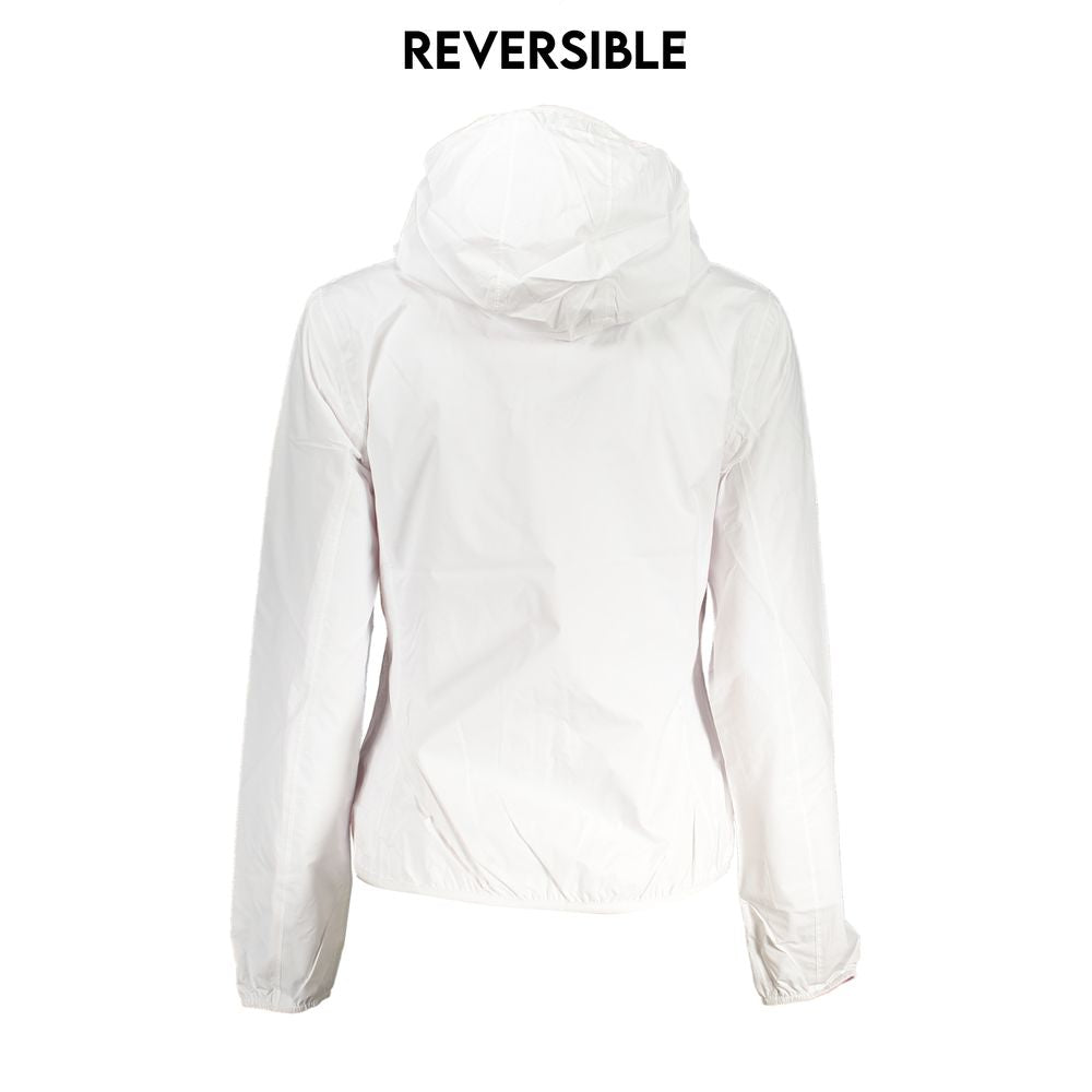 Discover the epitome of versatility with this sleek K-WAY long-sleeved hooded jacket. Designed for the fashion-forward individual, it boasts a reversible feature that allows you to switch up your look in an instant. The jacket is embellished with striking contrast details, handy dual pockets, and the iconic K-WAY application logo. Crafted from high-quality polyamide for durability and comfort.
