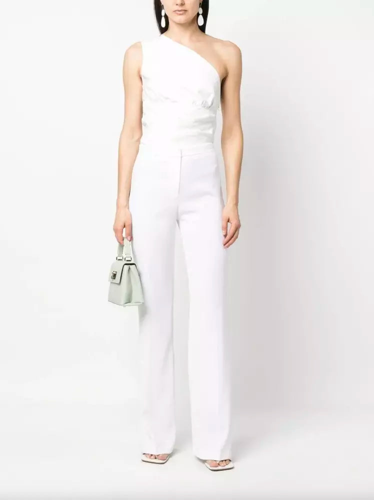 Elegant White Split-Hem Stretchy Trousers