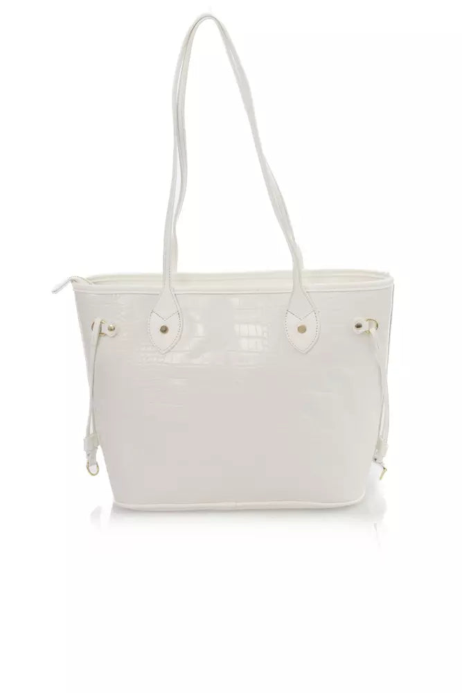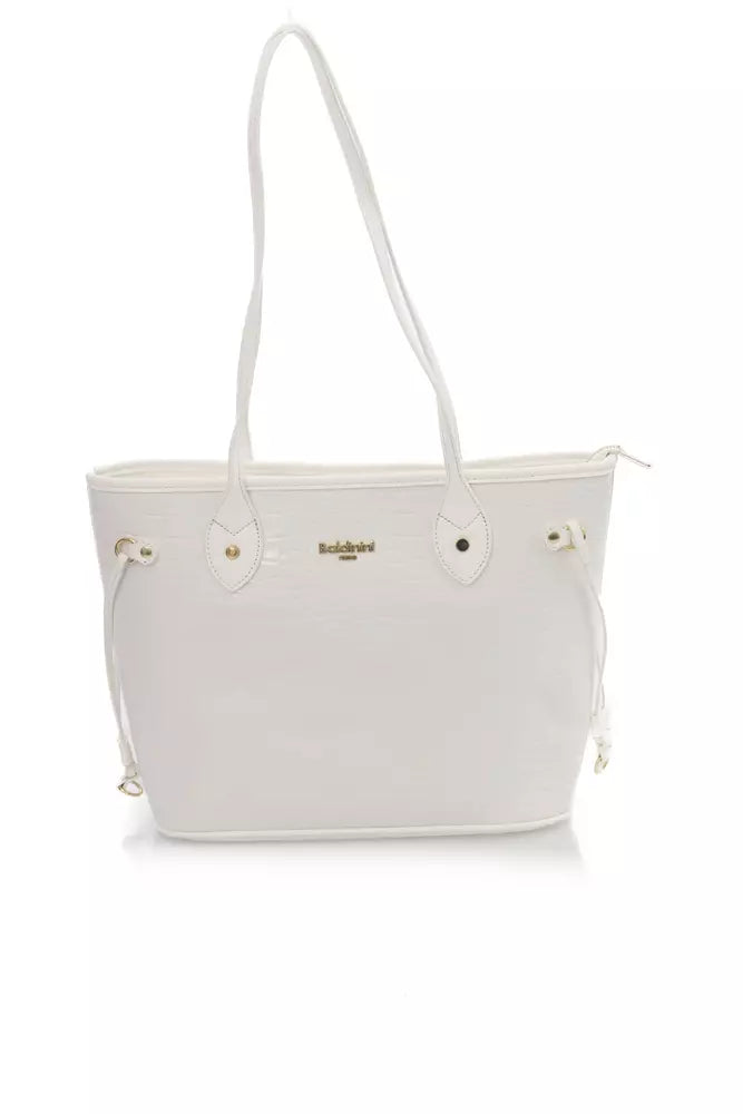 Discover the epitome of elegance with this exquisite white shoulder bag, a true testament to the craftsmanship of Baldinini Trend. This stylish accessory features a secure zip closure and internal compartments designed for optimal organization. Adorned with luxurious golden details and a prominent front logo, it measures a versatile 33*29*13cm, making it your perfect companion for both day and night outings.