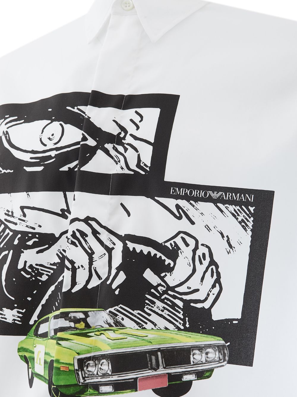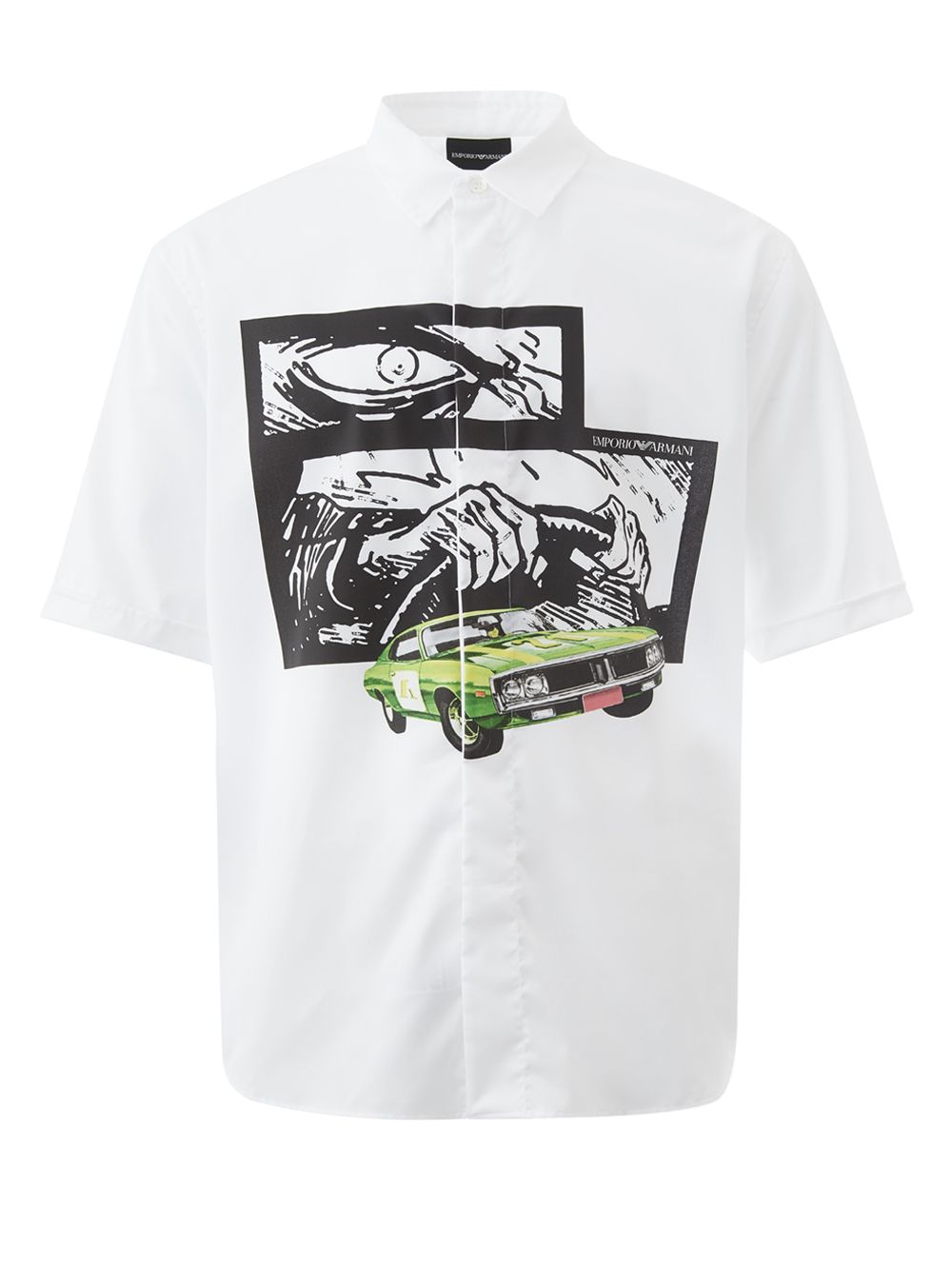 Step out in style with this pristine White Cotton Shirt from Emporio Armani, perfect for any occasion where making a sophisticated impression counts. The shirt boasts a classic regular fit, highlighted by a charming print and easy-to-style front buttons closure.