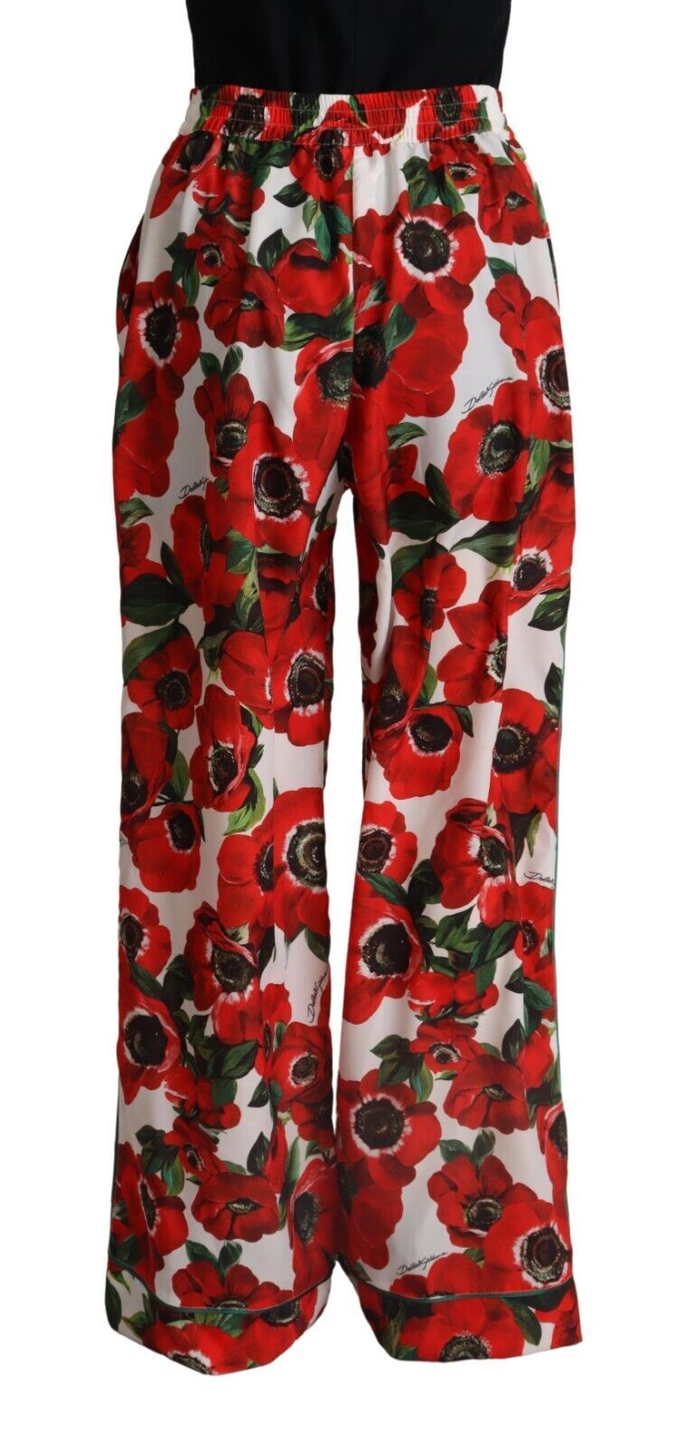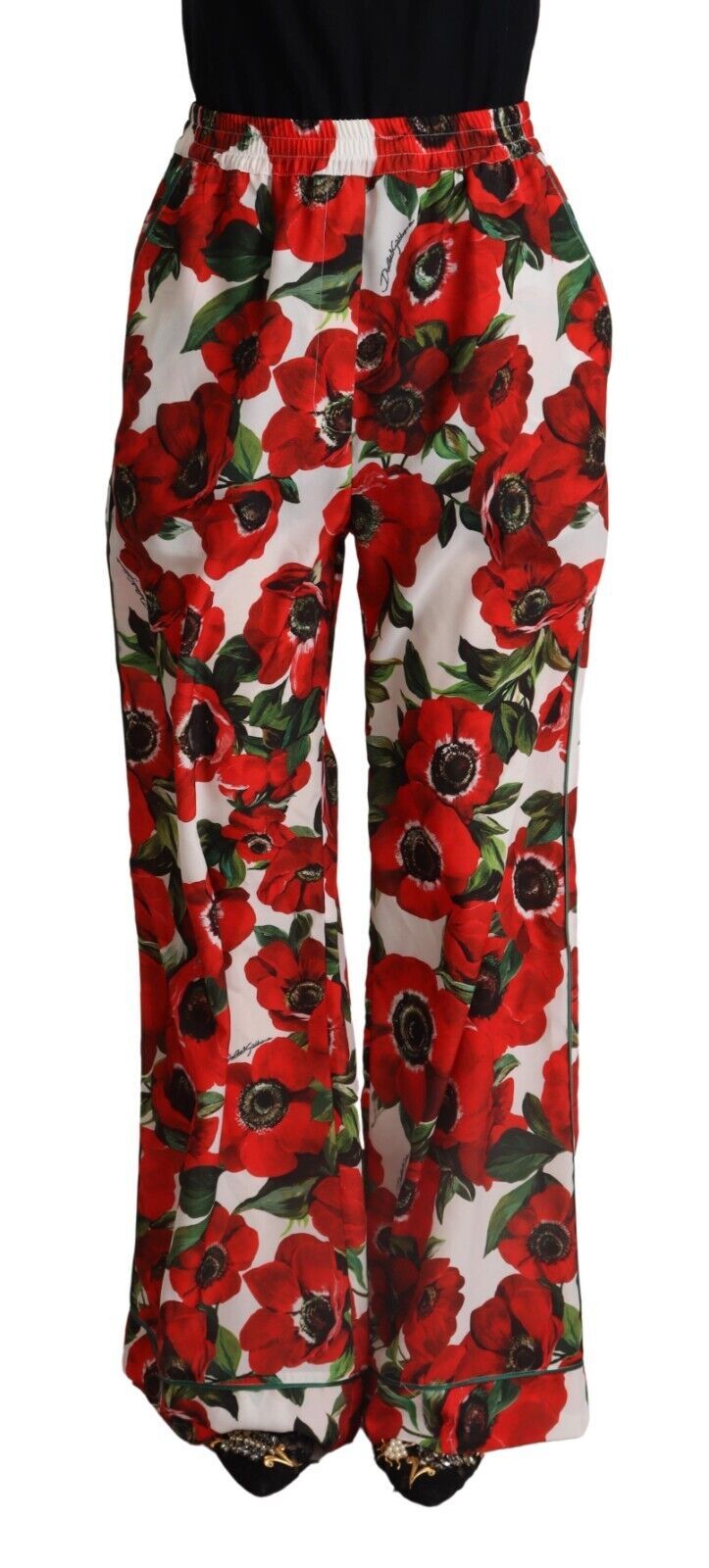 Step into spring with these gorgeous, brand new wide-leg pants, featuring a striking anemone print in a vivacious white and red combination. Perfect for adding a statement piece to your wardrobe, this item captures the essence of luxury and elegance that Dolce & Gabbana is renowned for. Tailored to offer a regular fit, these pants promise to be as comfortable as they are stylish, ideal for a variety of occasions.