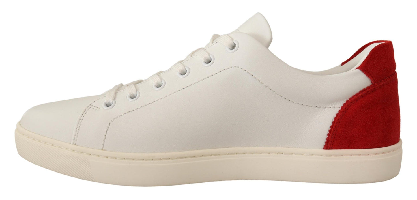 Step into luxury with these stunning, brand new Low-top Sneakers from Dolce & Gabbana. Crafted from high-quality leather and designed with a sleek white and red color palette, these sneakers combine style with comfort. The durable rubber sole ensures long-lasting wear, while the distinct logo details affirm the sneakers’ designer pedigree. Perfect for adding a touch of sophistication to any ensemble, they are proudly made in Italy, synonymous with exceptional craftsmanship.