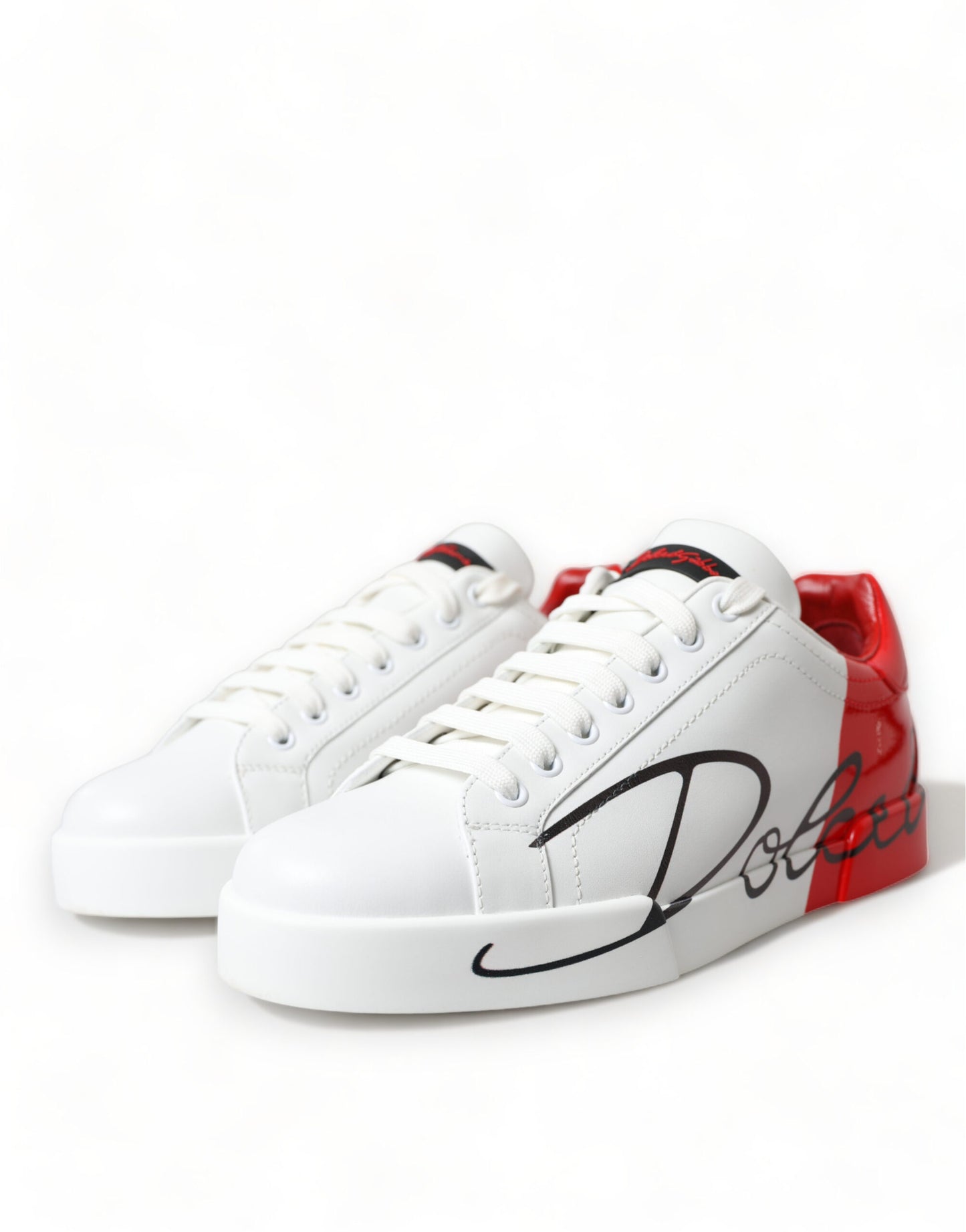 Gorgeous brand new with tags, 100% Authentic Dolce & Gabbana Portofino sneakers come with the brand name lettered on them. Made from leather in a red and white shade, they feature lace-up vamps, round toes, and comfortable rubber soles.