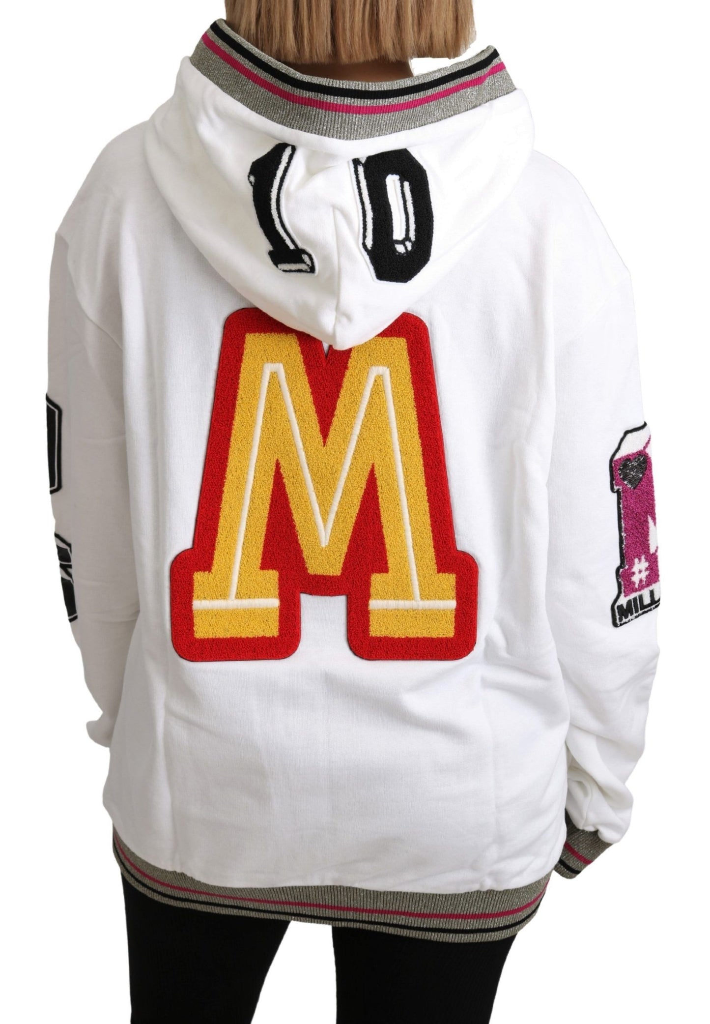 Indulge in the epitome of luxury with this exquisite Dolce & Gabbana sweater, a perfect blend of comfort and high-fashion. This stunning white hooded pullover boasts a vibrant patchwork design and is adorned with a ‘Royal Heart Club’ motif, embellished with clear crystals for a touch of glamour. Crafted from the finest 100% cotton, it ensures a soft and cozy wear. Completed with signature logo details and crafted in Italy, this piece exudes sophistication and style.