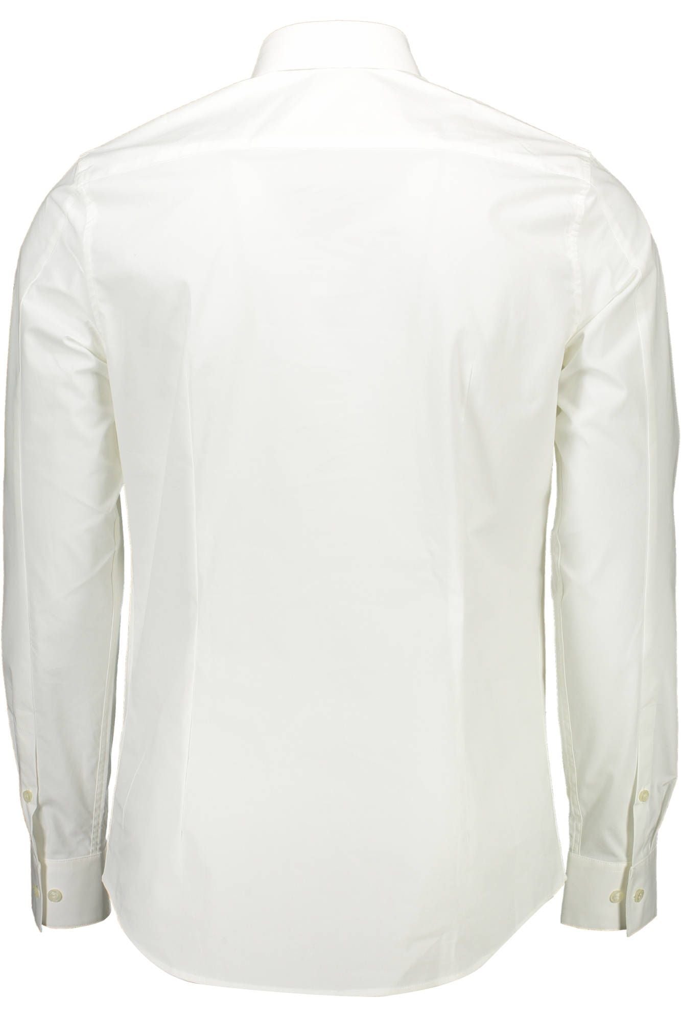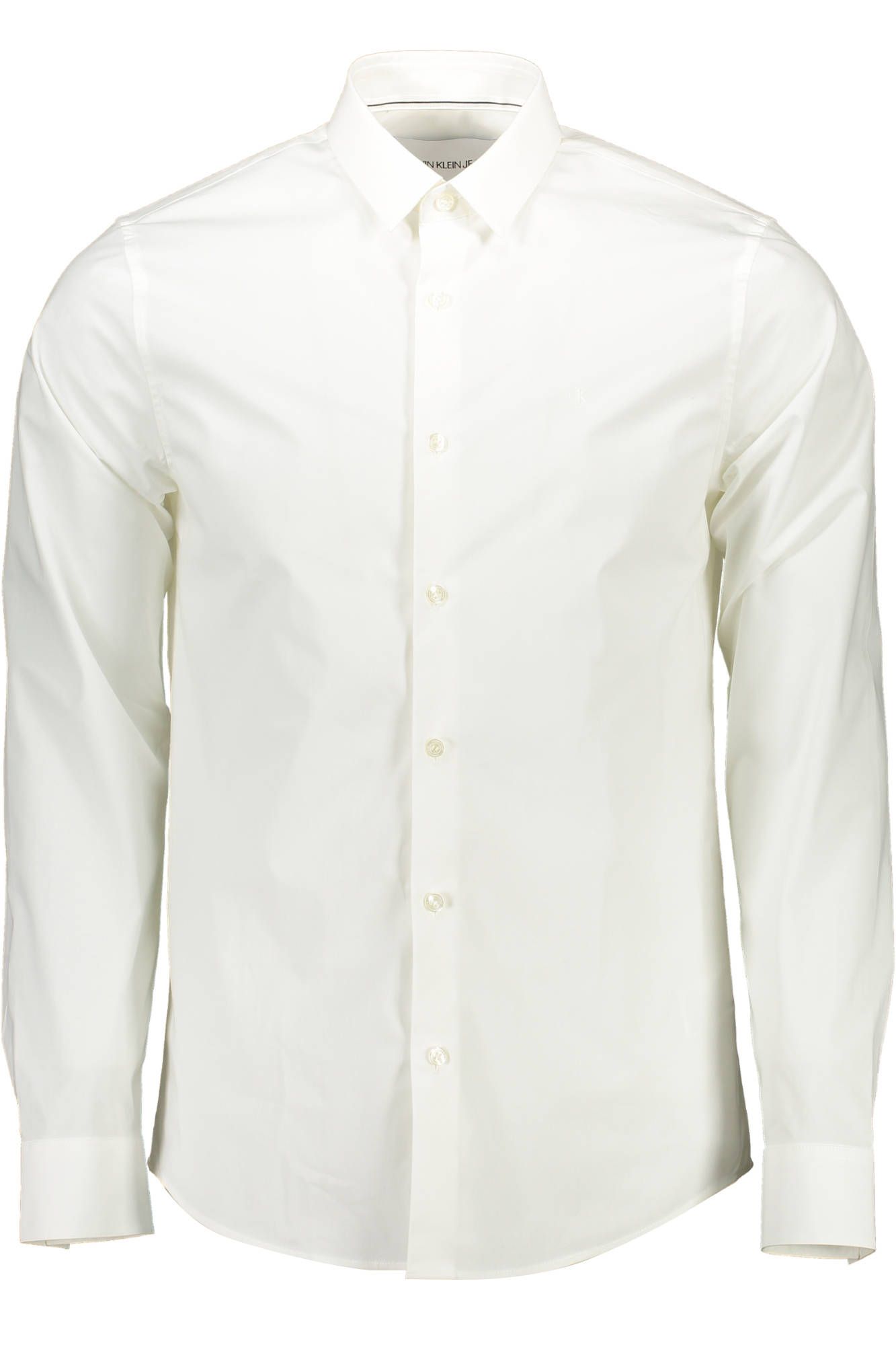 Refine your wardrobe with the timeless sophistication of a white long-sleeved slim fit shirt. This impeccable piece boasts a sharp Italian collar and elegant 1 button cuffs, each detail meticulously crafted to project a sleek, professional image. The subtle embroidery and distinctive logo elevate the shirt from a mere clothing item to a statement of style, courtesy of Calvin Klein.