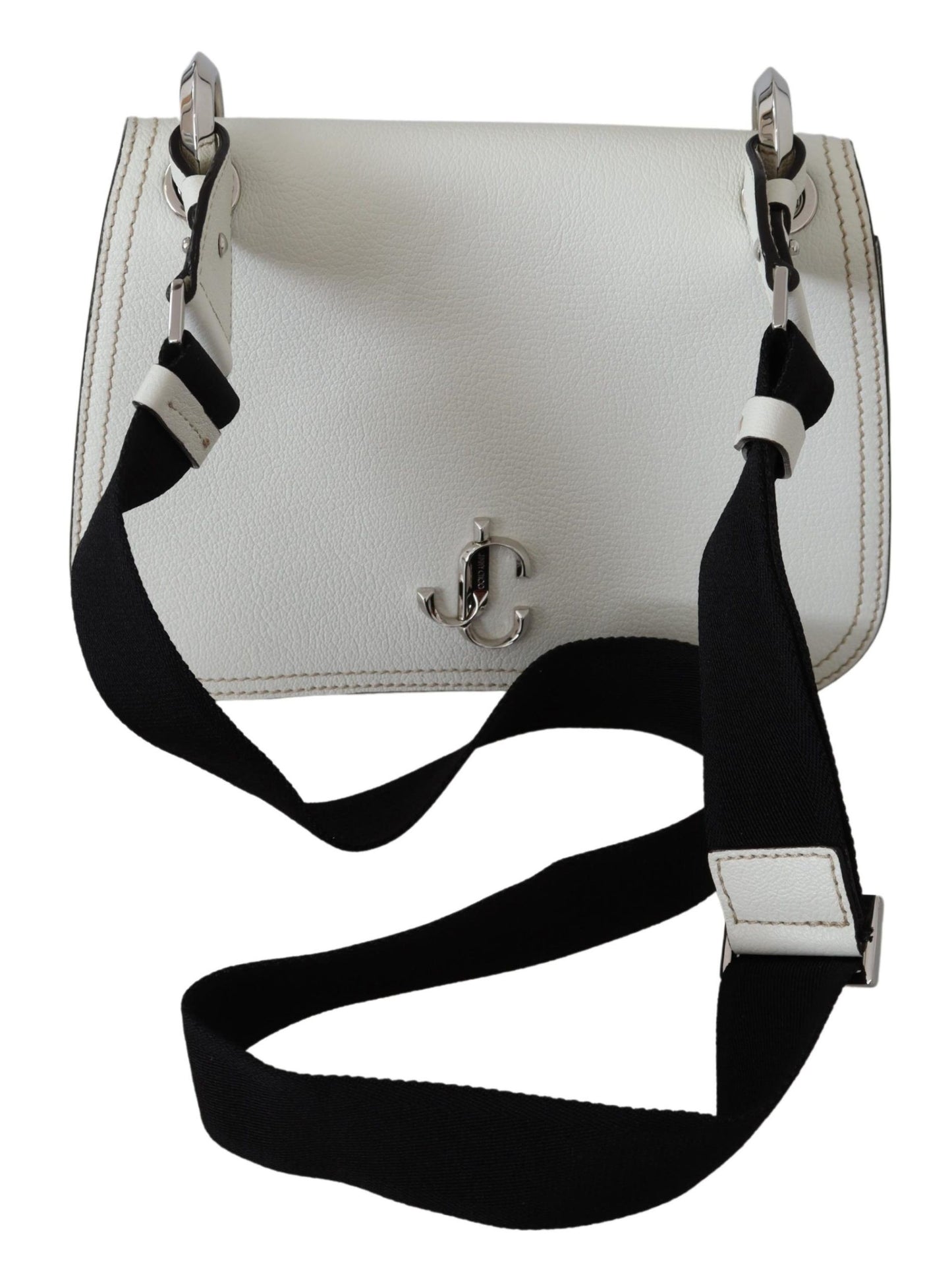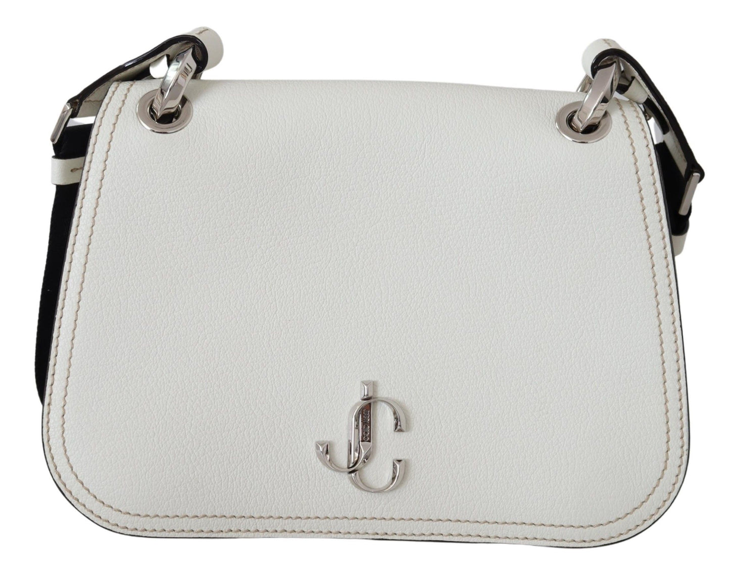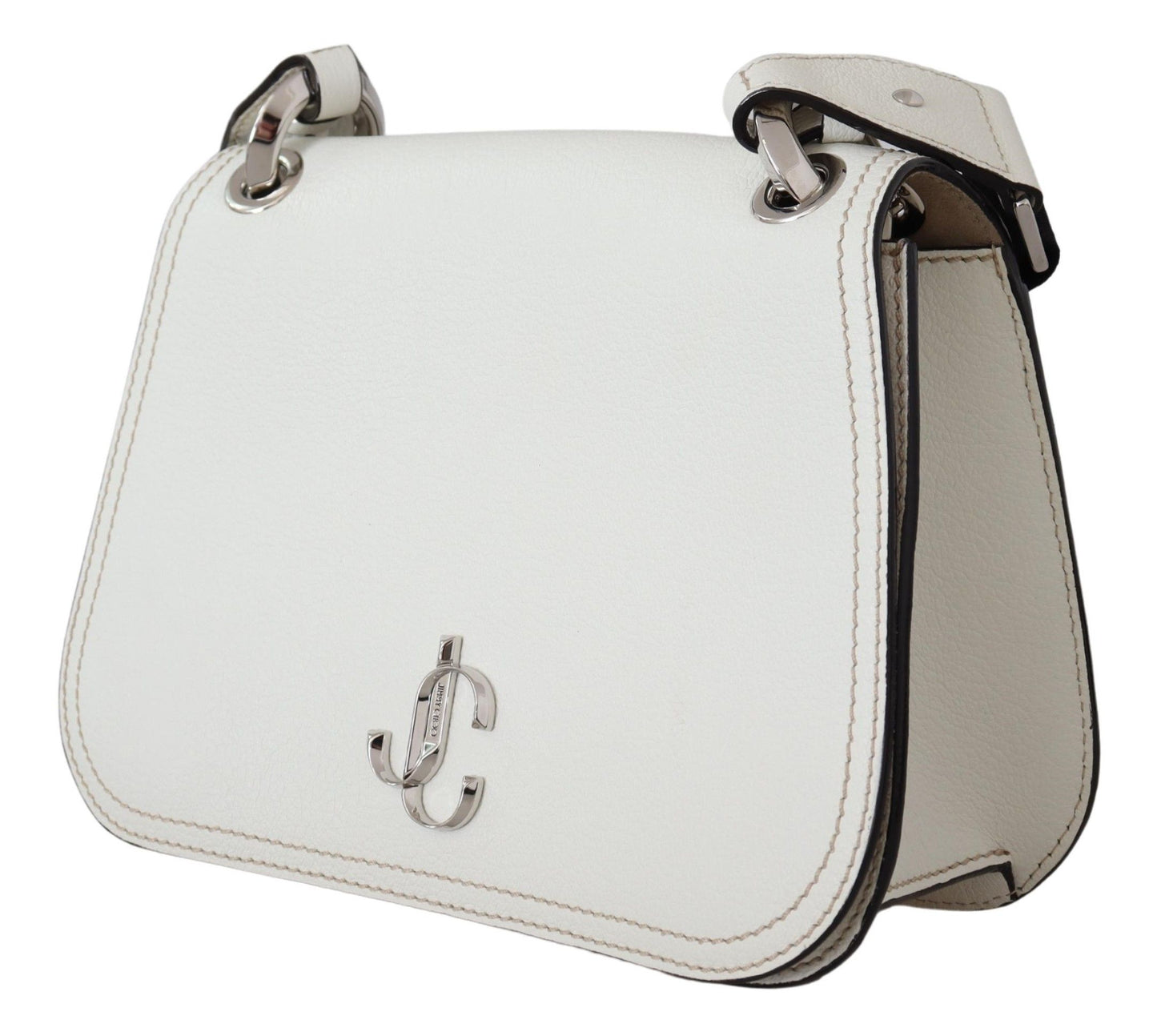 Chic White Leather Shoulder Bag with Magnetic Closure