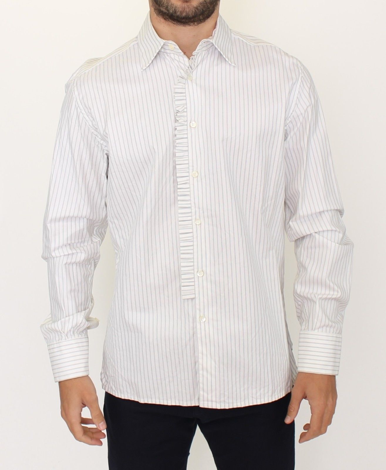 Embrace timeless sophistication with this absolutely stunning piece from Ermanno Scervino. A testament to classic style, this brand new, 100% authentic cotton dress shirt exudes sheer elegance with its crisp, white striped design. Perfect for formal occasions, the shirt offers a regular fit for comfortable wear along with subtle logo detailing for an exclusive touch.