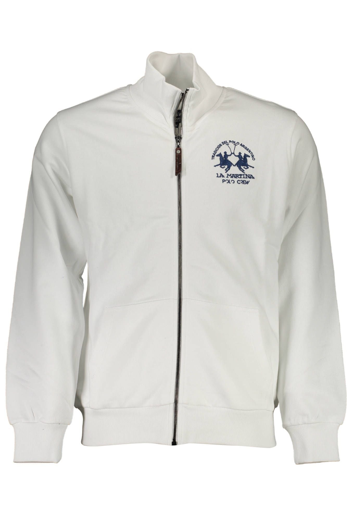 Refine your casual wardrobe with this elegant white sweatshirt by La Martina. Perfect for a day out or a cozy evening, this long-sleeved piece features a convenient zip closure and two central pockets, ideal for keeping your essentials at hand. Intricate embroidery adds a touch of sophistication, while the prominent logo showcases your taste for distinguished brands. Crafted from premium cotton, this sweatshirt ensures comfort and longevity.