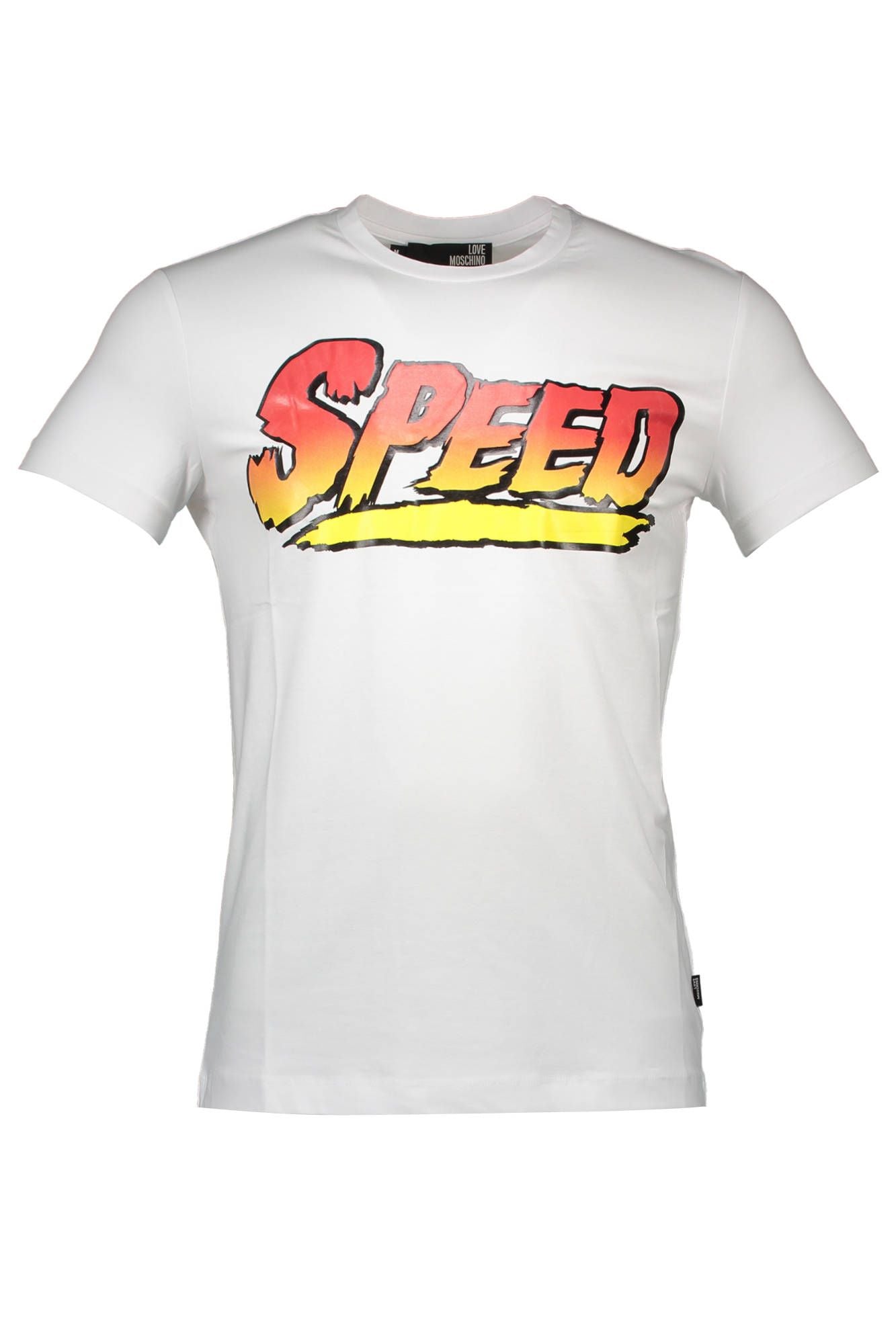 Indulge in the essence of sophistication with the Love Moschino short sleeve t-shirt. Crafted with a classic round neck and adorned with a distinct print and the brand’s iconic logo, this white tee fuses comfort with high-end style. Perfect for making a fashion statement while maintaining effortless ease.