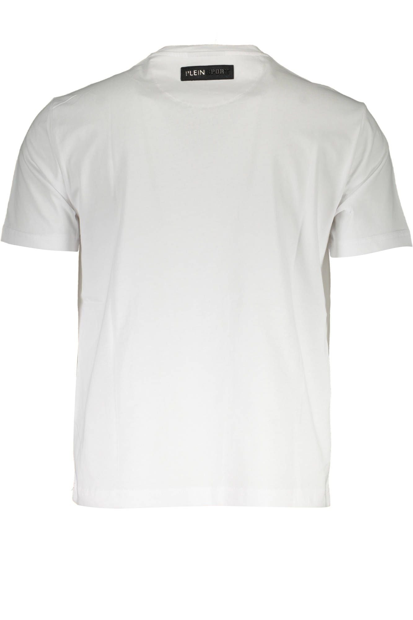 Refine your casual wear with this striking white t-shirt from Plein Sport, bringing effortless style to your wardrobe. Crafted with premium cotton, this short-sleeve crew neck tee boasts a dynamic print and the iconic Plein Sport logo, adding a touch of elegance and sporty flair.