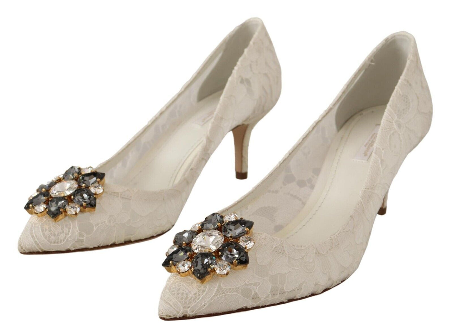 Step into luxury with these exquisite Dolce & Gabbana Taormina lace heels pumps, a perfect blend of style and elegance. Adorned with sparkling clear and gray crystals, these shoes are a gorgeous addition to any outfit, ensuring you radiate glamour on every occasion. Crafted with a keen eye for detail and made in Italy, they are a testament to high fashion and quality craftsmanship.