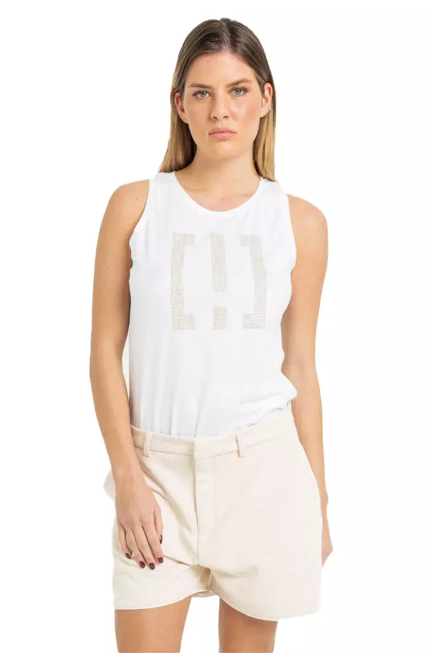 Elevate your wardrobe with Imperfect’s chic and comfortable cotton tank top, adorned with a dazzling logo in micro studs for a touch of luxury. Perfect for versatile styling, this top encapsulates casual elegance.