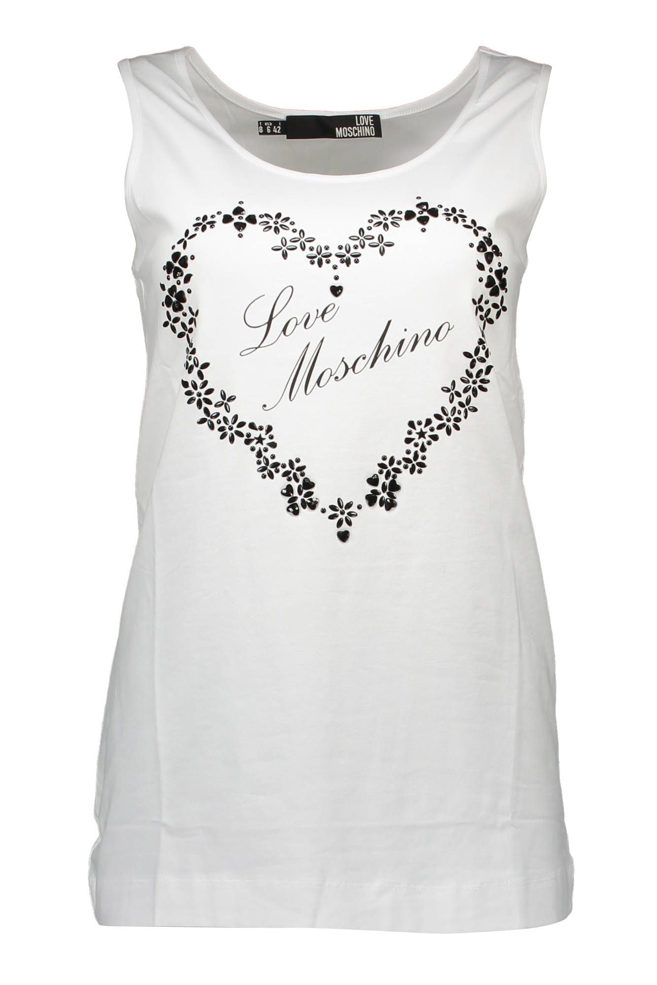 Refresh your wardrobe essentials with this effortlessly chic tank top, featuring unique print work and sparkling stones that accompany the standout Love Moschino logo. Crafted with exceptional attention to detail, this top is perfect for adding a touch of glamour to your casual ensembles while upholding comfort with its wide shoulder cut and breathable cotton fabric.