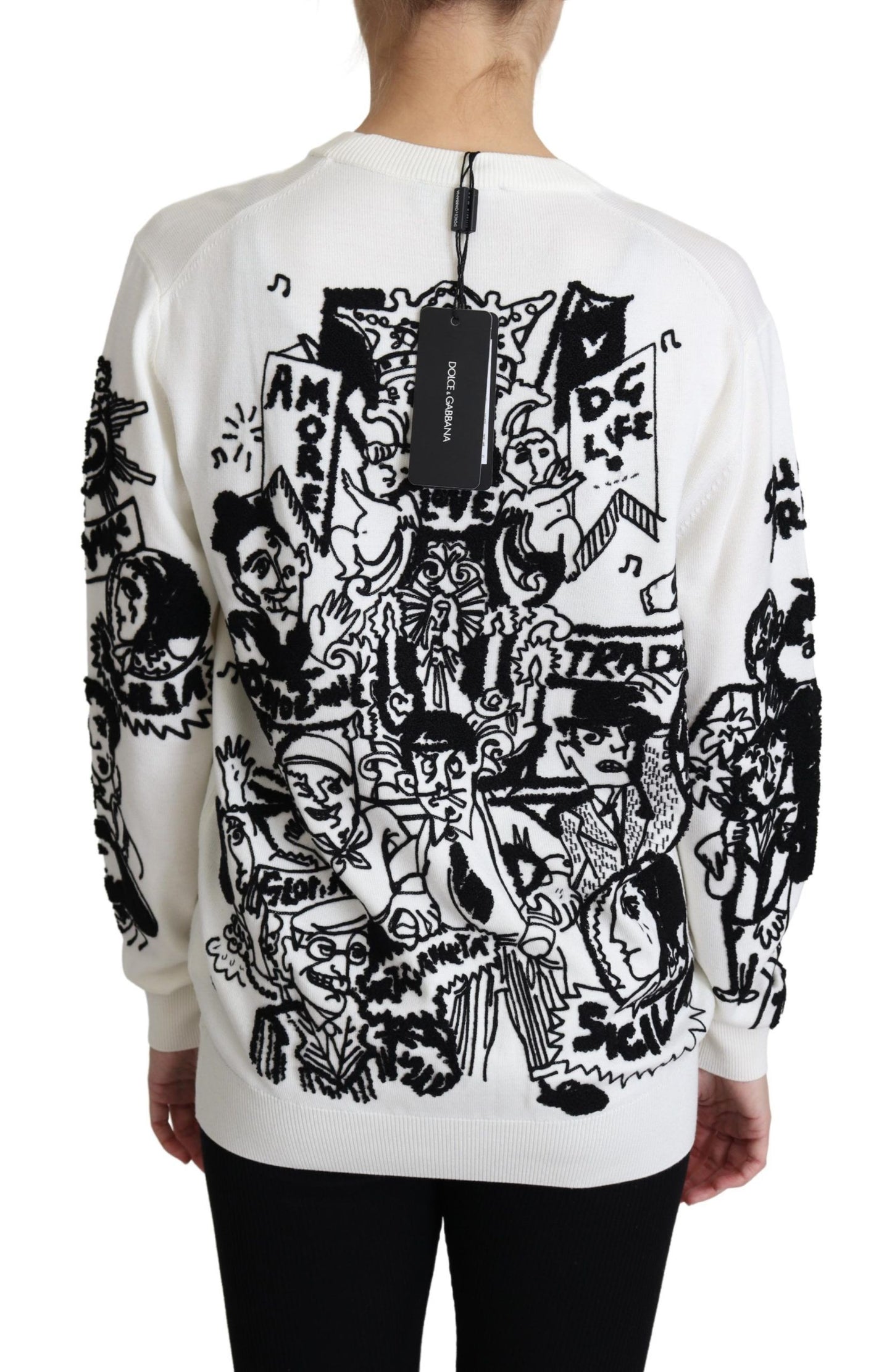 Gorgeous brand new with tags, 100% Authentic Dolce & Gabbana black and white loose pullover decorated with voluminous embroidery stylized as graffiti.