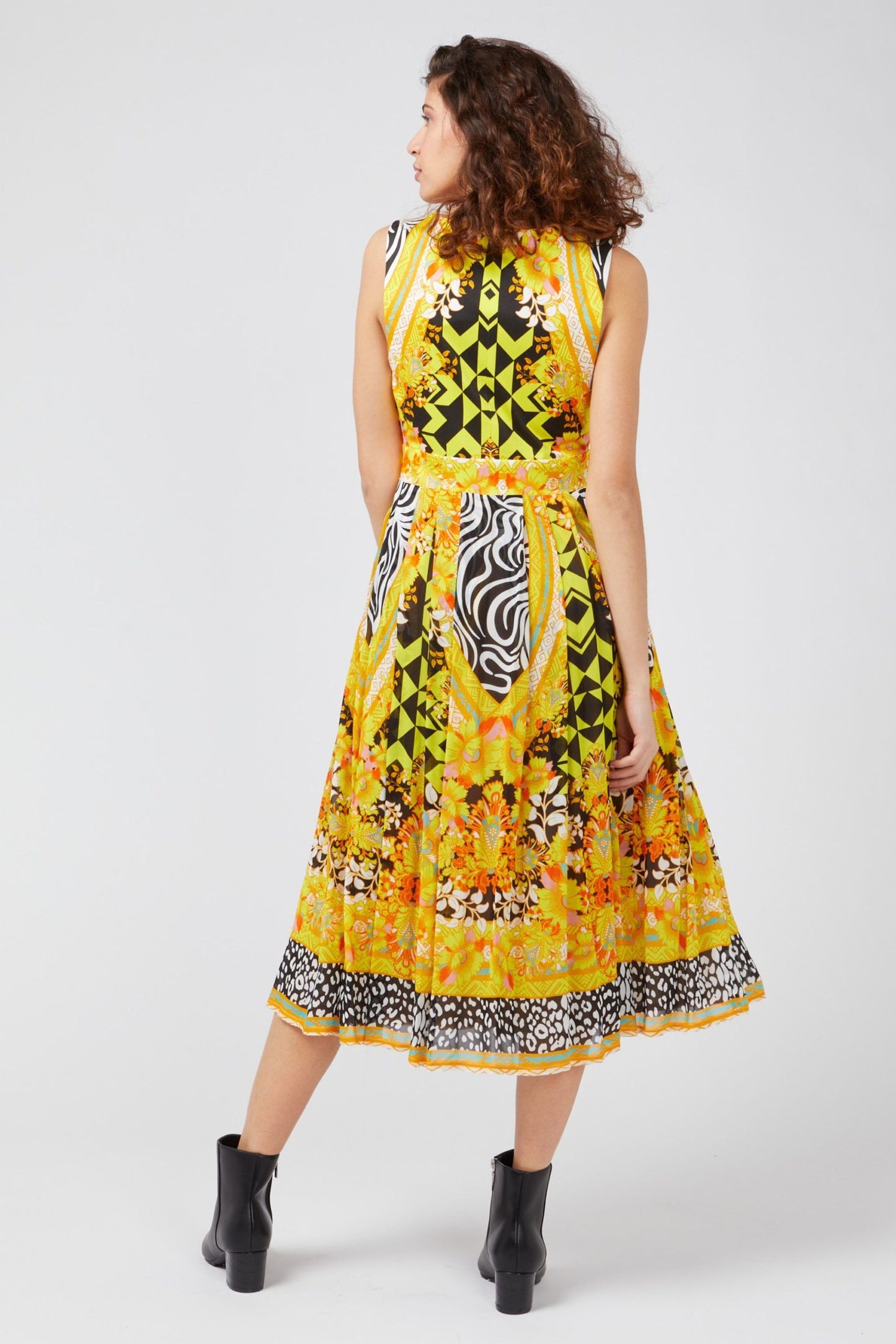 Embrace vibrant style with this eye-catching sleeveless dress from Custo Barcelona, perfect for making a bold fashion statement. Crafted with a blend of cotton and a touch of elastane, this dress offers both comfort and a flattering fit.