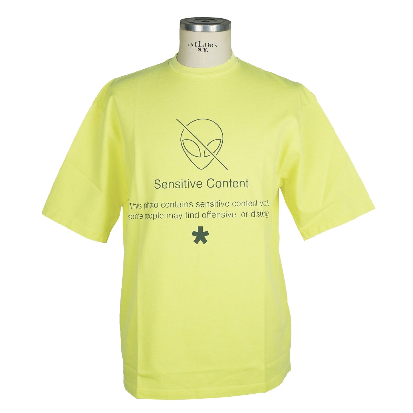 Make a bold fashion statement with this vibrant yellow crewneck t-shirt. A standout piece with an eye-catching graphic print that demands attention. Crafted in Italy, this t-shirt ensures both comfort and style. Perfect for adding a pop of color to your wardrobe.