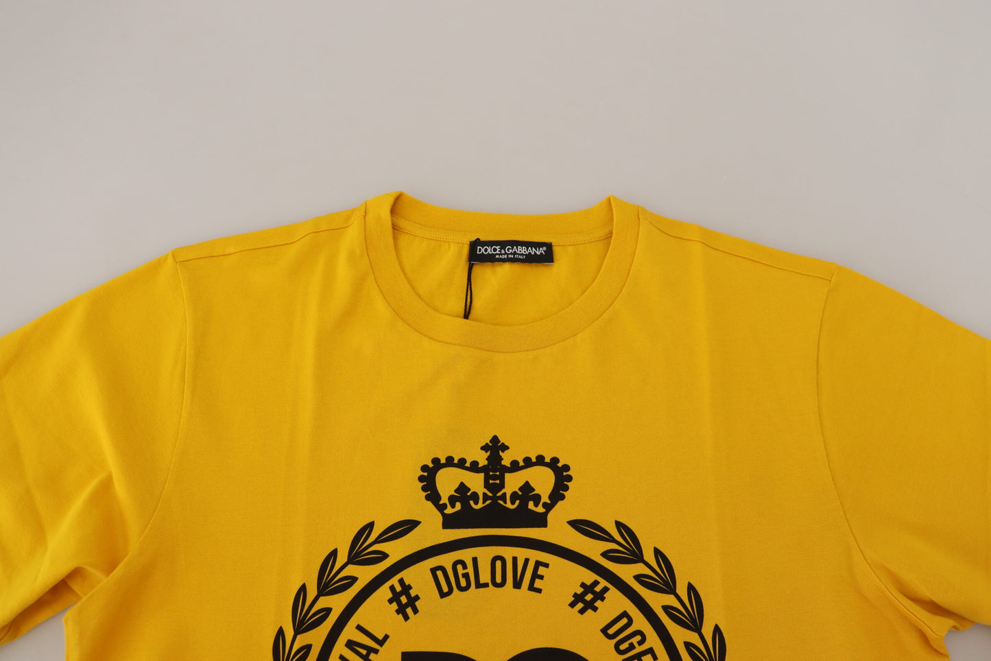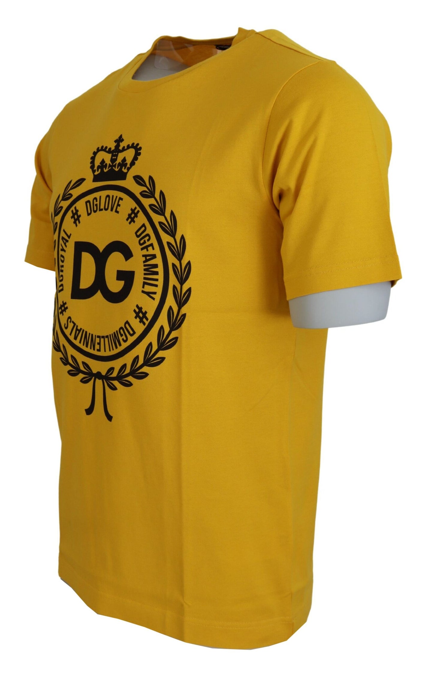 Indulge in the embodiment of luxury with this pristine 100% authentic Dolce & Gabbana t-shirt. Adorned with a subtle logo detail, this dark yellow tee boasts a classic round neckline and short sleeves, creating a timeless silhouette perfect for any fashionable ensemble. Crafted in Italy, this piece promises a regular fit that will elegantly grace an XS size with unparalleled sophistication.