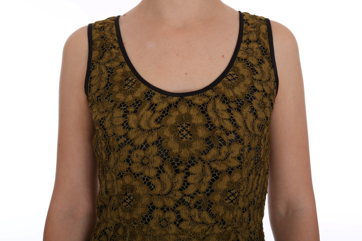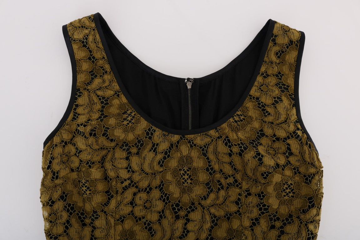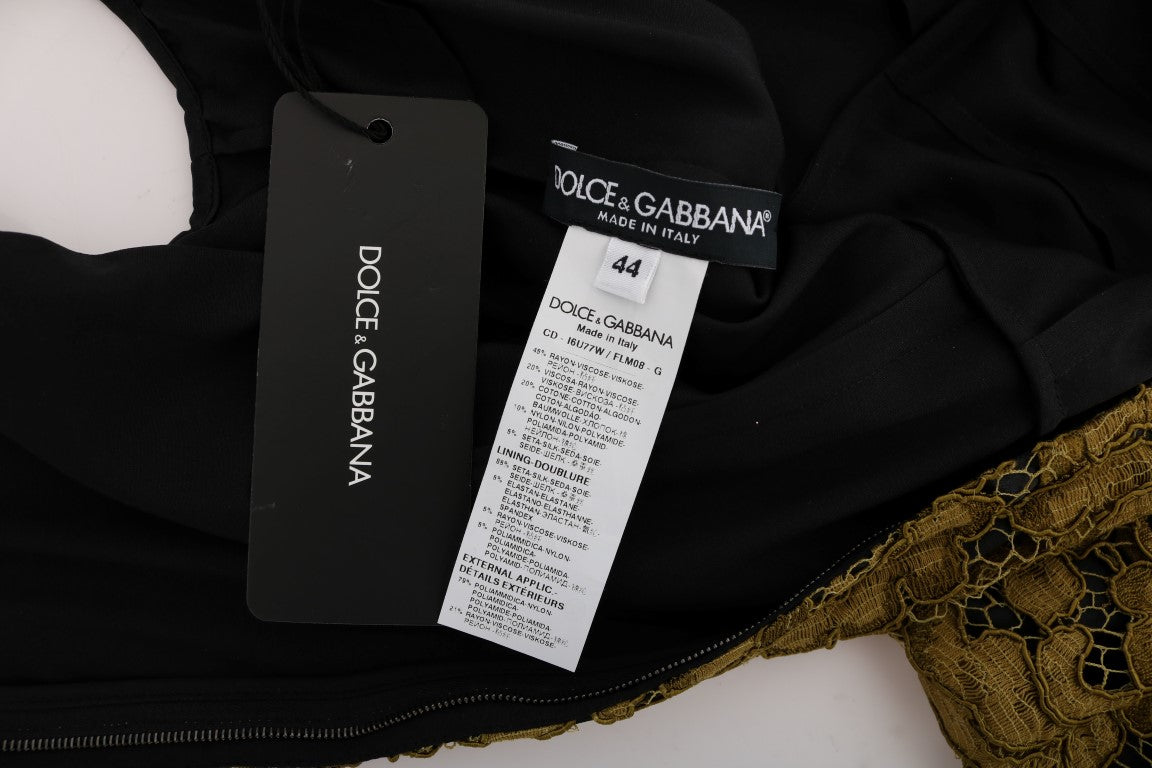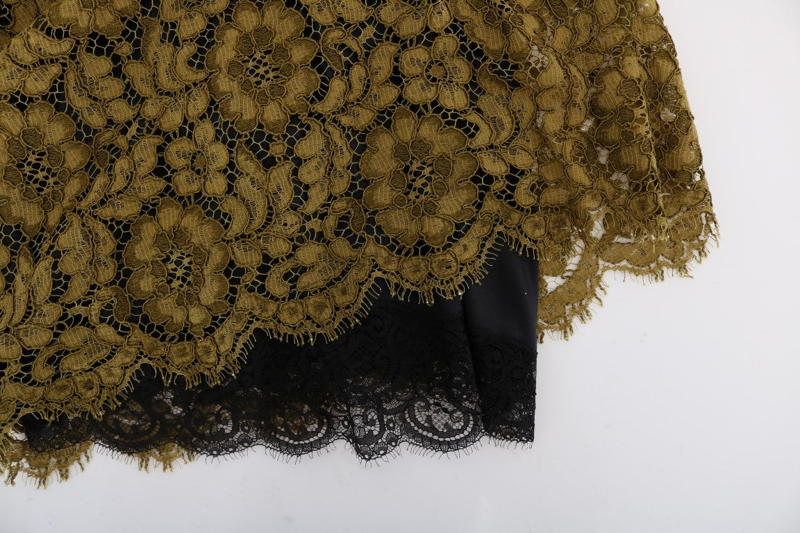 Adorn your wardrobe with the elegance of Italy with this exquisite Dolce & Gabbana lace dress. It’s a sartorial masterpiece that exudes charm and sophistication, featuring a stunning yellow floral design and a flattering 3/4 sleeve midi cut that sits above the knees. The luxurious black silk stretch lining ensures comfort without compromising on style, while the convenient back zipper offers ease of wear. Expertly crafted in Italy, this dress is a true testament to high craftsmanship and exclusive design. Whether attending a chic garden party or a high-profile event, this dress promises to make a memorable statement.