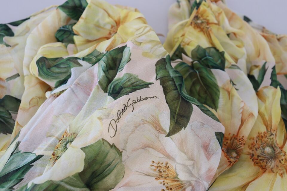Step into a world of effortless elegance with our stunning pleated maxi dress, crafted from luxurious 100% silk. This breathtaking piece by Dolce & Gabbana boasts a vibrant yellow floral print that exudes charm and romanticism. Its round neck and short sleeves add a touch of graceful simplicity, while the fully pleated design and sleek rear zip fastening highlight the brand’s attention to detail and commitment to exquisite craftsmanship. Made in Italy, this dress isn’t just a fashion statement—it’s a wearable piece of art that promises to turn heads and ignite conversations.