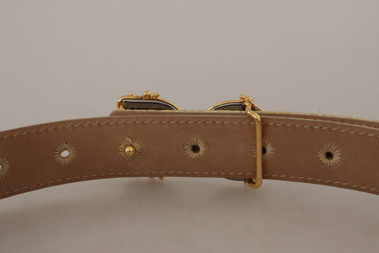 Indulge in the luxury of Italian craftsmanship with this gorgeous Dolce & Gabbana belt, brand new with tags and original box. Perfectly sculpted from high-quality leather, the belt shines in a vibrant yellow gold hue, complemented by a sleek metal buckle engraved with the iconic logo. Whether paired with a dress or tailored trousers, this belt is sure to add a touch of elegance and refinement to any ensemble.