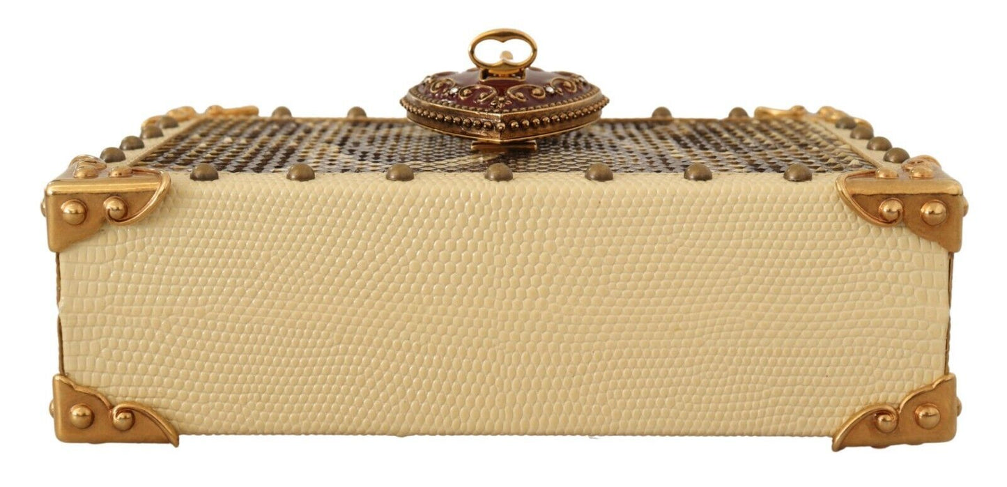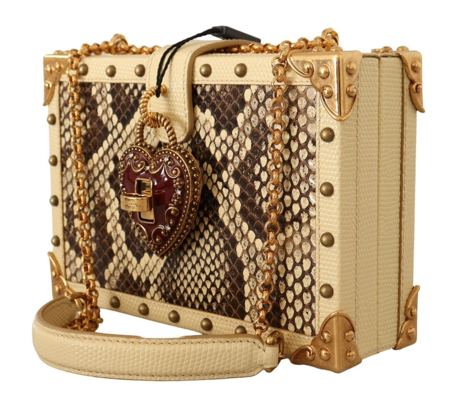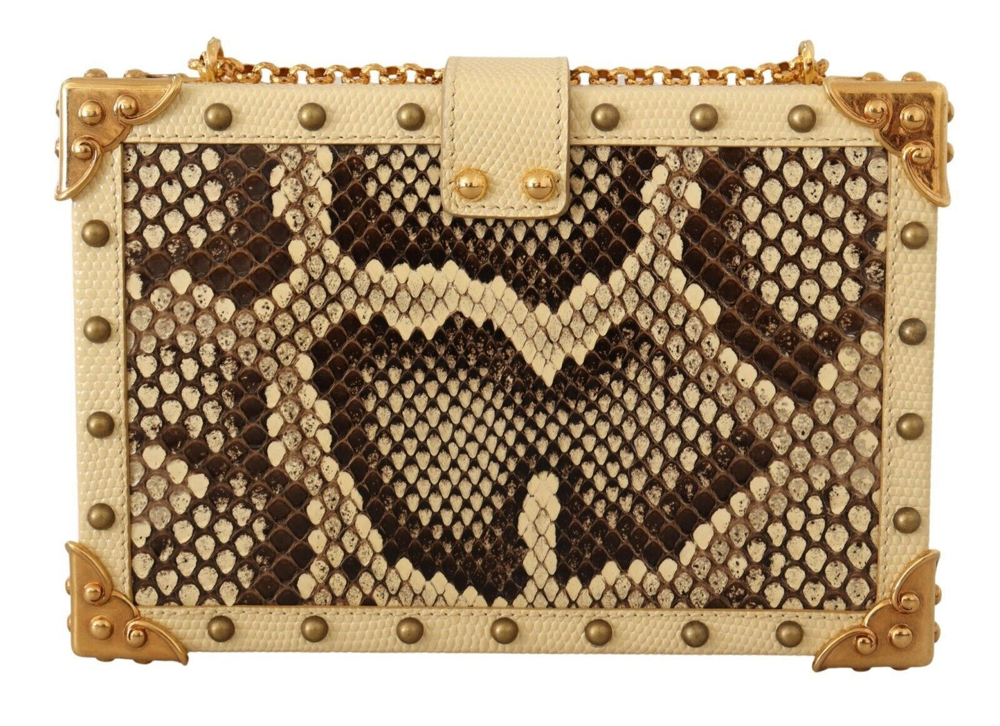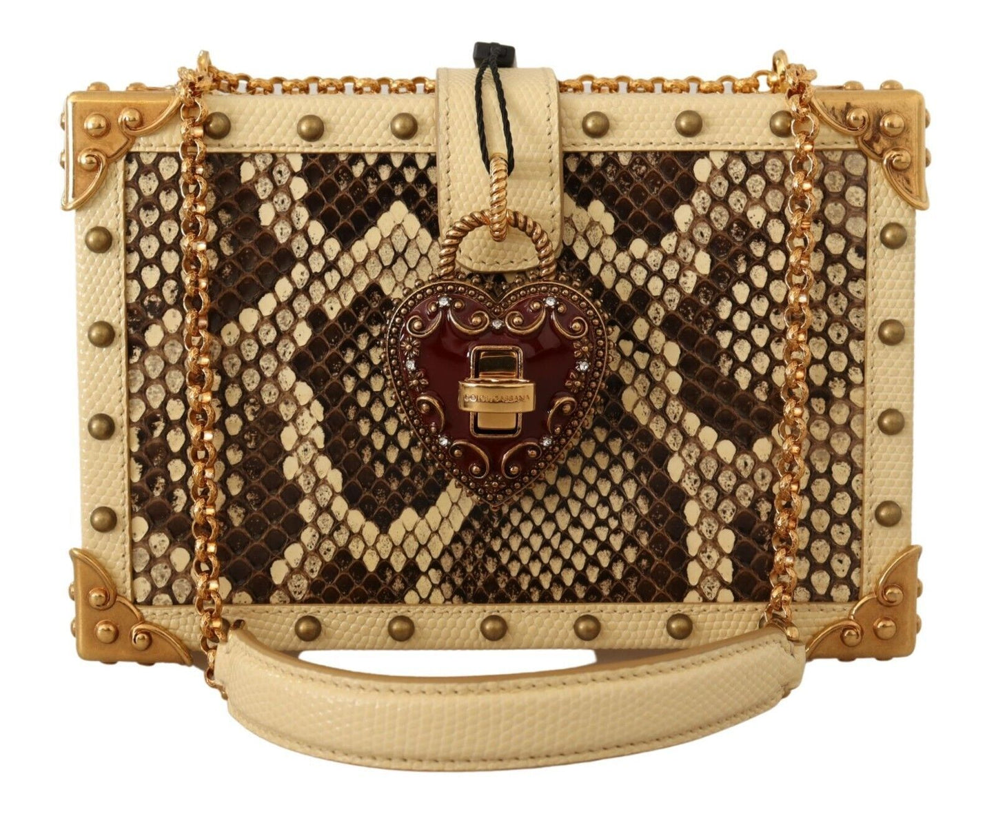 Elevate your evening look with this absolutely stunning, Dolce & Gabbana Women’s Bag. Exuding elegance and luxury, this MY HEART Box shoulder clutch bag, dazzles in a vibrant yellow hue complemented by rich gold metal detailing. Crafted with a unique blend of materials featuring both leather and exotic Python Moluro, it offers an opulent touch to any ensemble.