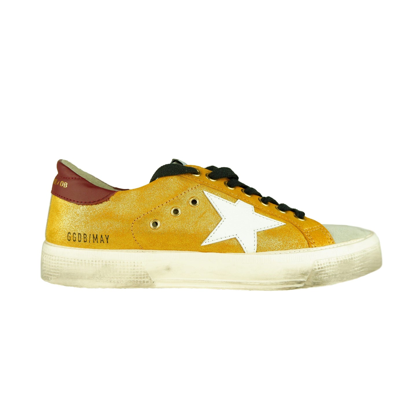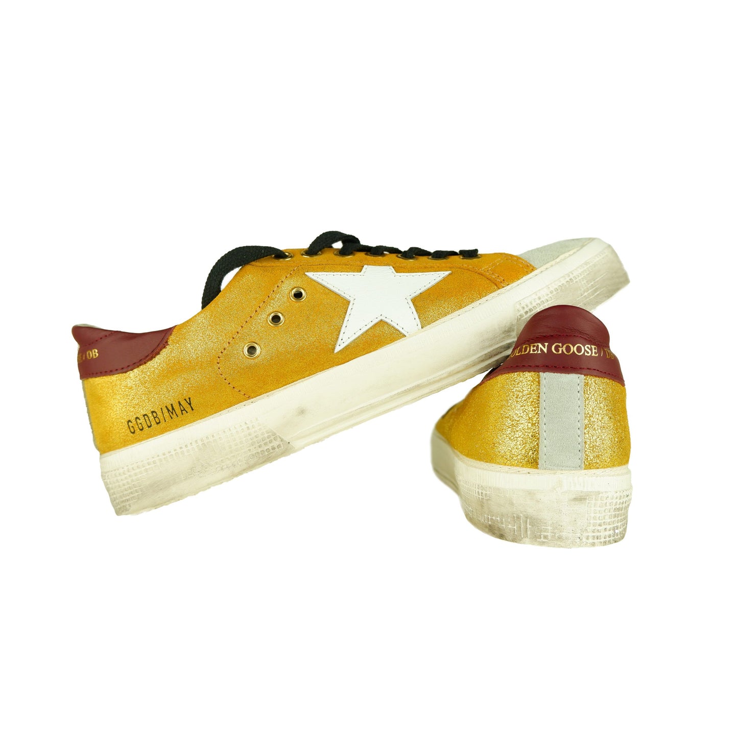Step up your sneaker game with this pair of golden-glittered patent leather sneakers, a blend of luxury and street style elegance. Accentuated with a burgundy leather heel counter and the iconic star logo in crisp white, these are the perfect kicks to add a sparkle to your step. Premium quality craftsmanship is evident with 100% leather materials and a durable rubber sole, all crafted in the esteemed workshops of Italy.