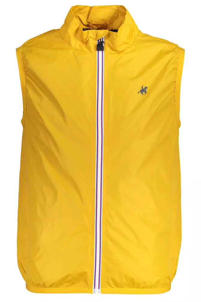 Experience unmatched style and practicality with the U.S. Grand Polo sleeveless waterproof jacket. Ideal for the fashion-forward individual, this vibrant yellow jacket is a versatile addition to your wardrobe. It features two convenient outside pockets and one inside pocket, perfect for securing your essentials. The zip-front design ensures easy wear while the printed logo adds an exclusive touch of brand recognition.