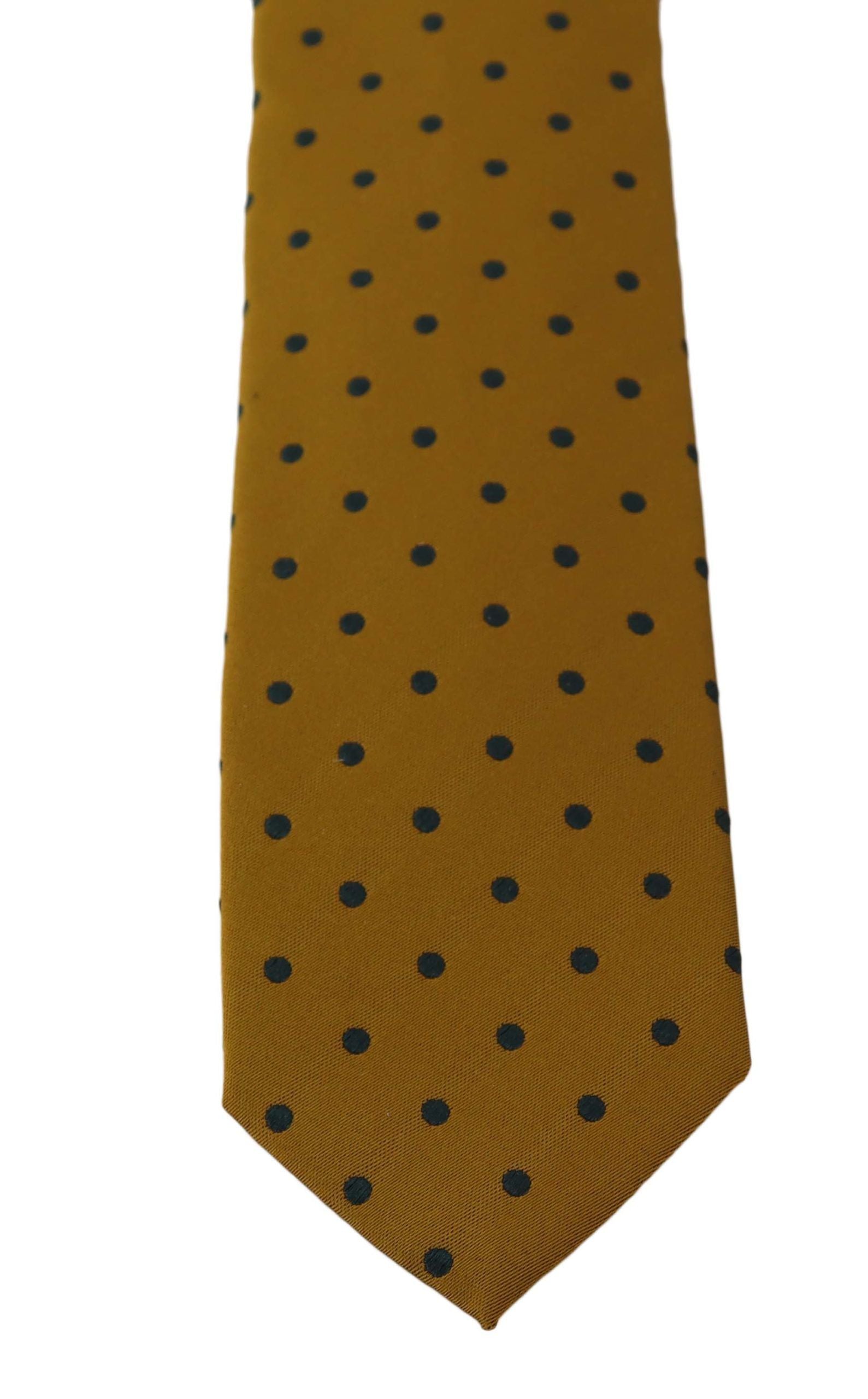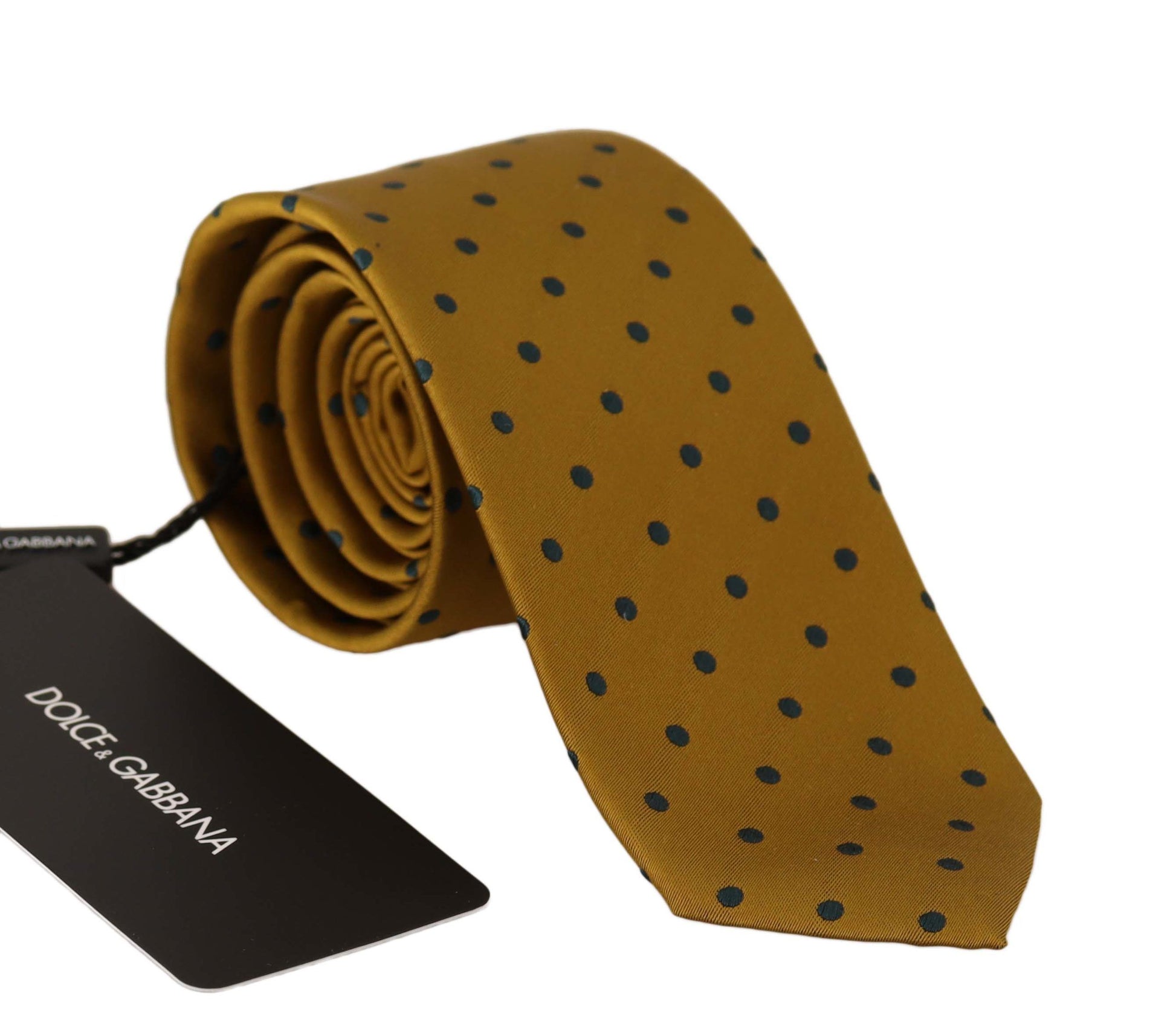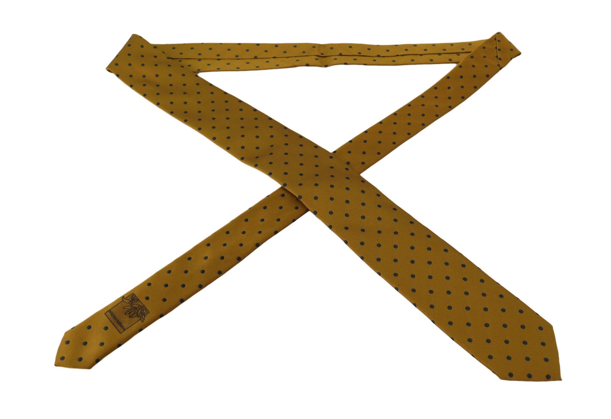 Discover elegance with a playful twist in this Dolce & Gabbana 100% silk tie. Boasting a vibrant yellow hue adorned with chic polka dots, this tie is a perfect statement accessory for the modern gentleman. Crafted in Italy, it promises to add a touch of luxury to your formal attire.