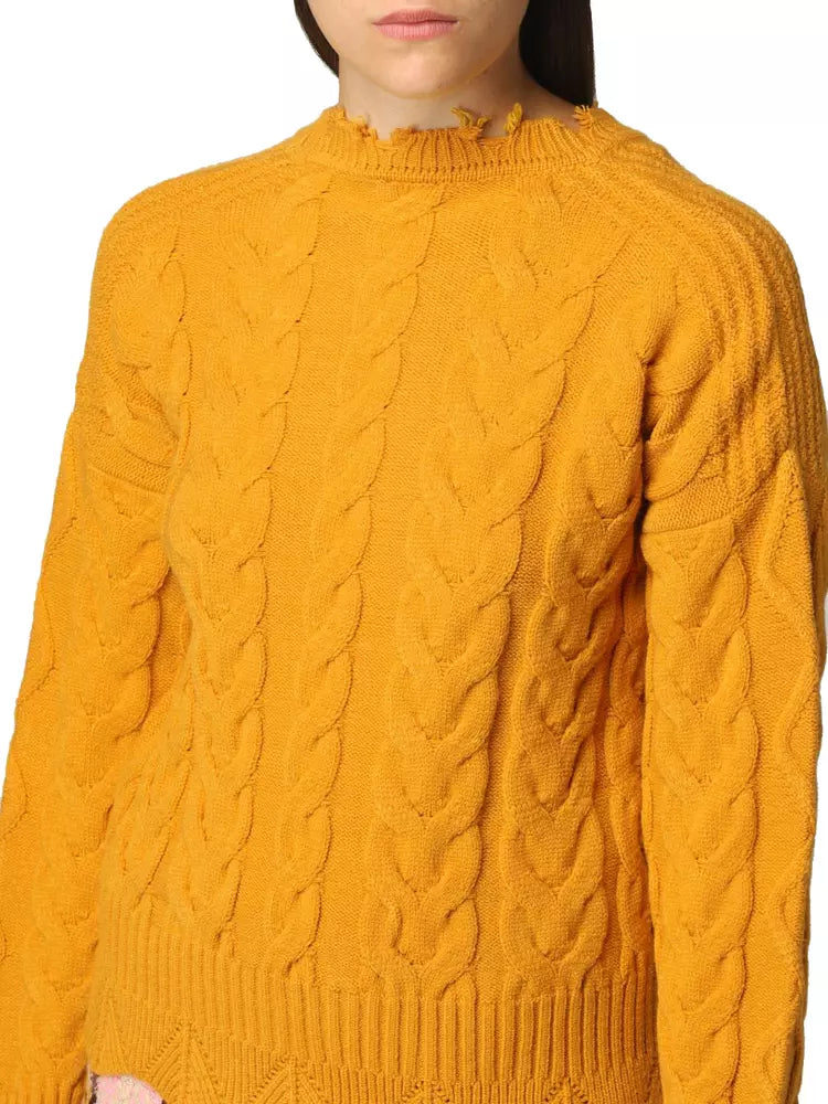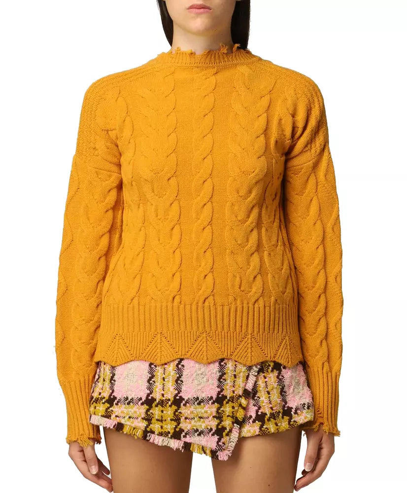 Embrace comfort and style with this vibrant Yellow Crew Neck Sweater. The unique broken ribbed knit collar and cuffs give this piece a touch of modern flair, perfect for fashion-forward individuals. Luxuriously crafted in Italy, this sweater combines sophistication with a playful edge.