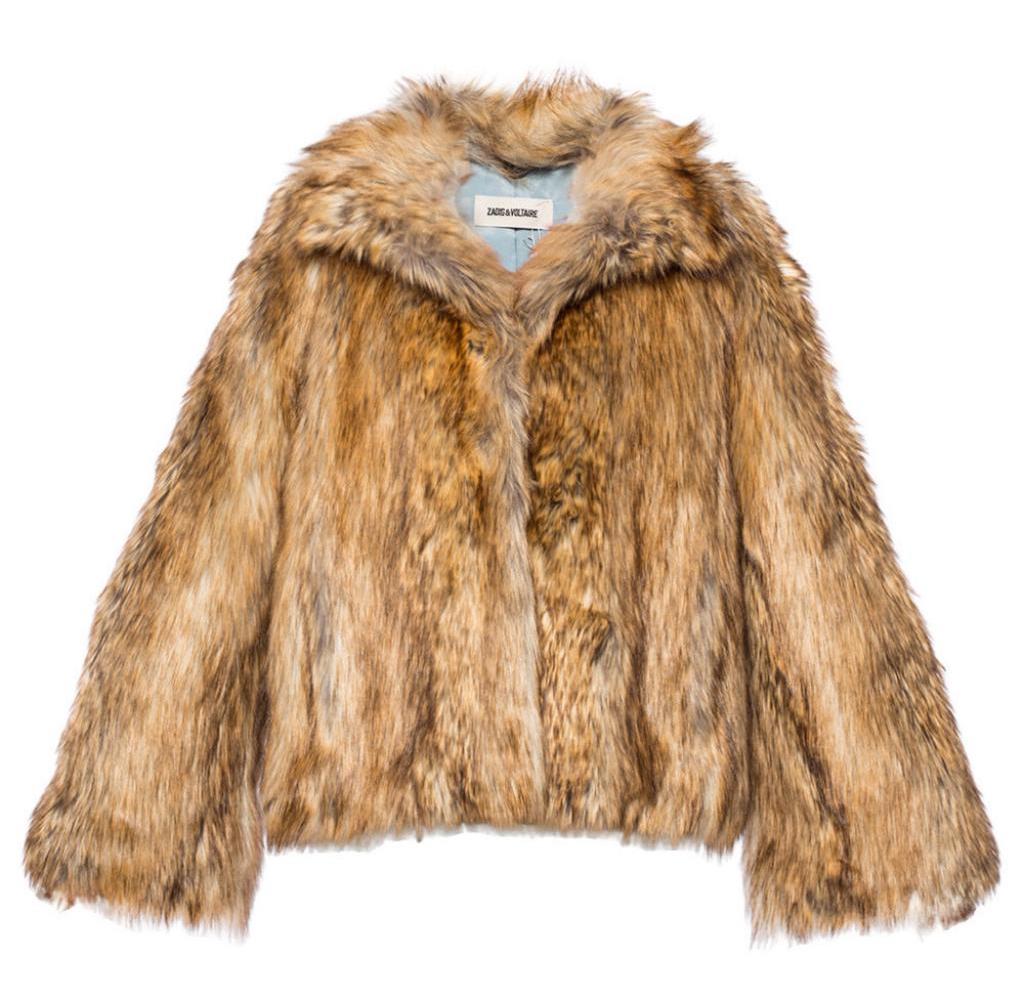 Zadig & Voltaire eco-fur jacket, brown jacket, front buttons closure, 2-pockets design.