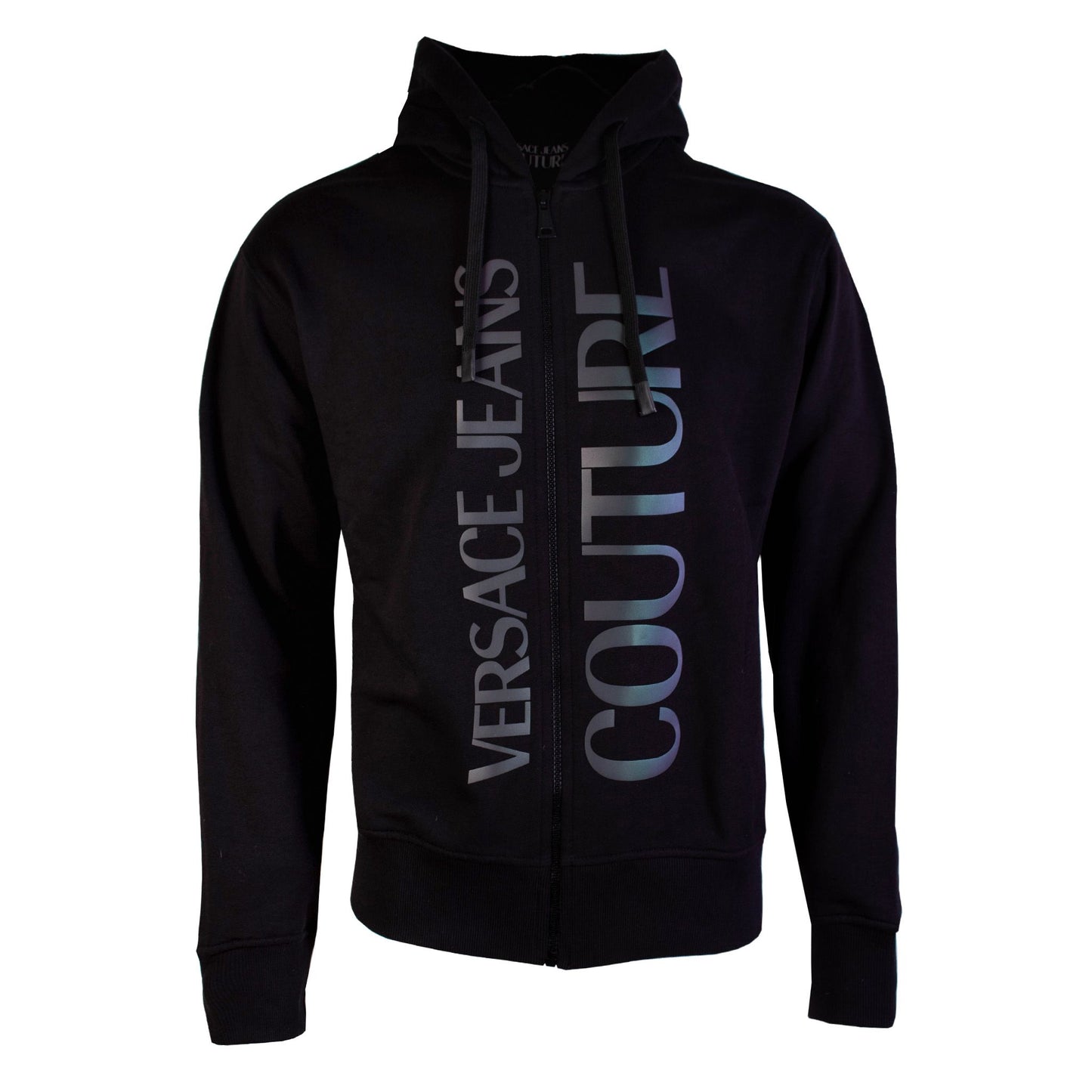 Immerse in the epitome of style and comfort with this stunning new arrival, the Versace Jeans Couture Black Zipped Sweatshirt. Crafted from premium cotton, this black sweatshirt offers a regular fit, ensuring both comfort and elegance. The front zip closure provides convenience and a sleek look, while the adjustable hood adds a touch of practicality. Elevate your wardrobe with the unmistakable Versace Jeans printed logo, a statement of luxury and designer appeal.